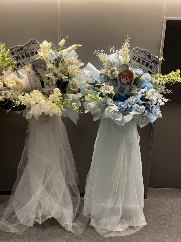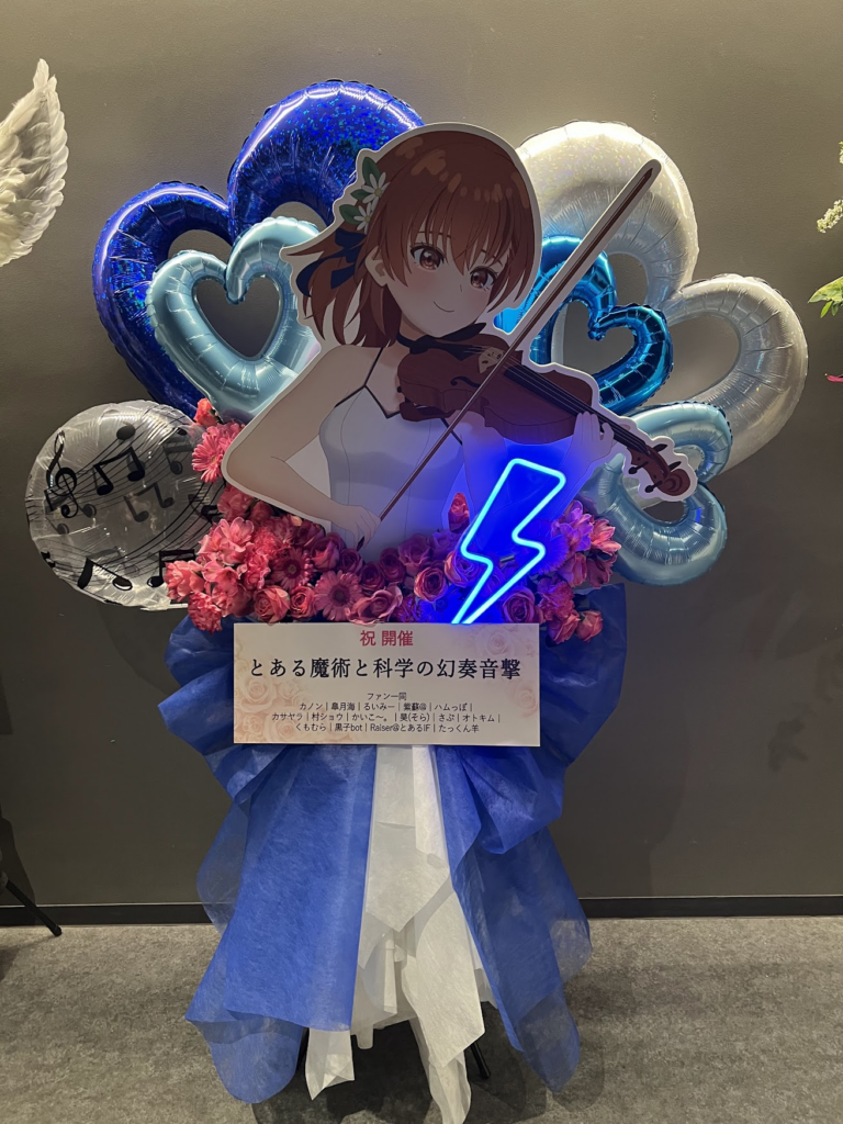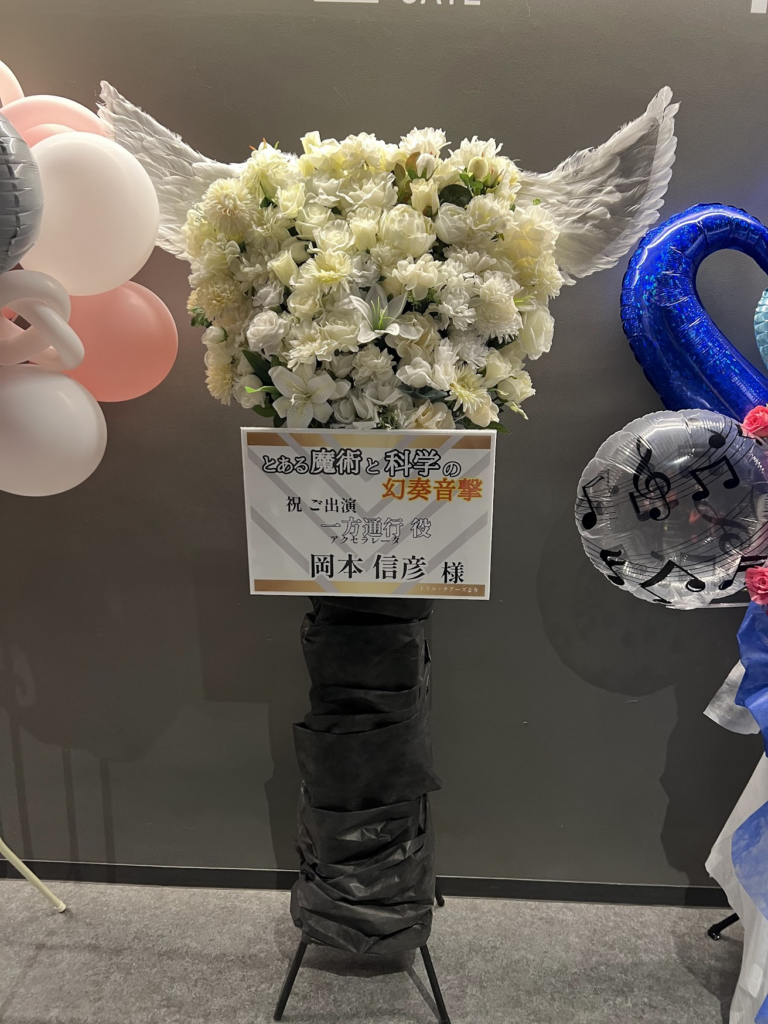 オーケストラの休憩時間に繋ぎのトーク。声優さんたちがドレスアップされてて、回ったりもしました。禁書目録の部、佐藤が阿部と井口、岡本と日高がそれぞれキャラの結婚式が挙げてるように見えるという。とにかく懐かしい。日高は当時中学生、いきなりたくさんのセリフを話すことになって、今でも覚えています。岡本、当時大学では「あの笑い声やれよ」とからかわれたらしい。男性声優に詳しくないが、フラワースタンドを見れば人気を窺えます。